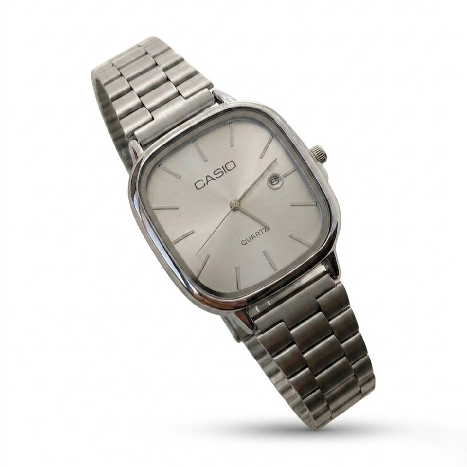 ساعه كاسيو ستانلس ستيل مقاومه لرزار الماء عقارب + عداد تاريخ 3 الوان فضي اسود تصميم كلاسيك راقي رجالي او حريمي علبه CASIO الاصليه